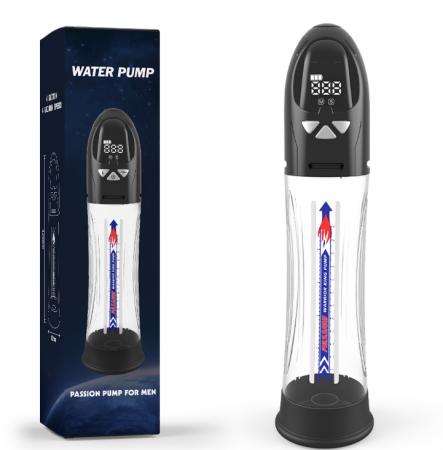 Electric Water Pump with LCD Screen. The water will spilling out of the bottom of controller slowerly while the water is full ( Don't worry about water spraying everywhere) 100% Waterproof ,Could used together with water Working Models: Rechargeable , 8 modes , 4 speeds for pumping, 4 speeds for suck in and suck out massage . * Size : Full Length 31.6cm ,Insertable Length 21cm, diameter Ø7.75cm * Material: ABS/ PET / Silicone * Battery: Li-ion 800MAH Magnetic charger Charging Time: 2~3 hours, Working Time : 2~3 Hours